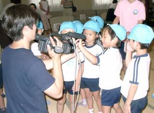 カメラマンのおにいさん「話しを聞かせて!」 「このカメラどうなってるの?」 「あんまり近いと撮れないよ!(笑)」