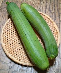 | ナーベラー・・「沖縄へちま」だそうです。 「味噌によく合います。 皮をむいて、味噌炒め、味噌汁に」・・と添え書きがありました。 さっそく1本でお味噌汁を作りました。 油揚げと里芋とネギとシメジも食わせてみました。