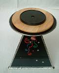 日本万華鏡倶楽部の許可を頂いて、写真、文章を記載しておりますので 他への転記使用及び複写は、ご遠慮ください スパッタリングミラーでなく普通ミラー(ステンド用)を使って作りました。 傷の付きにくい種類のスパッタリングミラーを使おうか・・迷いましたが、 何千回、何万回見ても安心できる普通のミラーを選びました。 これでミラー中にオブジェクトを直接入れてもミラーに傷がつくことはありません。 オブジェクト オブジェクトはコードを束ねたり、袋を綴じる時に使われる中にワイヤーが入っている キラキラテープリボン?を螺旋にして作りました。 とても軽いので、磁石で簡単に多様な動きが表現出来ます。 万華鏡の覗き方、見方 両手(又は片手)に磁石を持ち、万華鏡を真上から覗き込みながら、万華鏡のボディにそって自由に動かします。 オブジェクトを持ち上げて落としたり・・・・ちょっとボディから離して、磁石を回せばオブジェクトは踊ります。 テーパードミラー中のオブジェクトはいろいろな立体映像を見せてくれます。 万華鏡自体も回転するようになっていますので回しながら、磁石でオブジェクトを自由自在に動かして立体映像を楽しんでください。 とても楽しく遊べる万華鏡です。 中がちょっと暗いのでライト(懐中電灯)をつけました。 このライトはLEDなので熱くなりませんし、 単四電池(3個)で50時間持ちますので、頻繁に電池換えの必要はありませんので 、一展示会に1回で十分です! このライト探しと取り付け台作りに掛かった時間は 万華鏡本体の数倍!・・・もっともっと大変でした(笑)